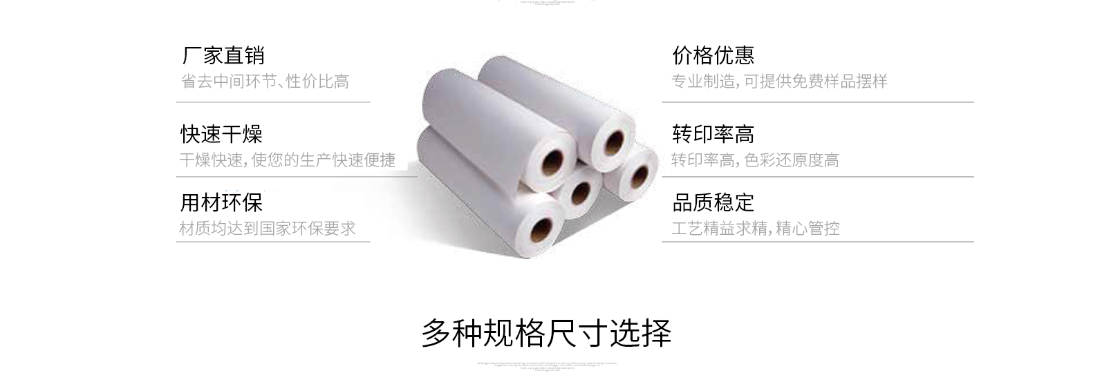 尺寸:1600/1500/1400/1300/1118/1080/914/800/700/610/420/210mmx100m
